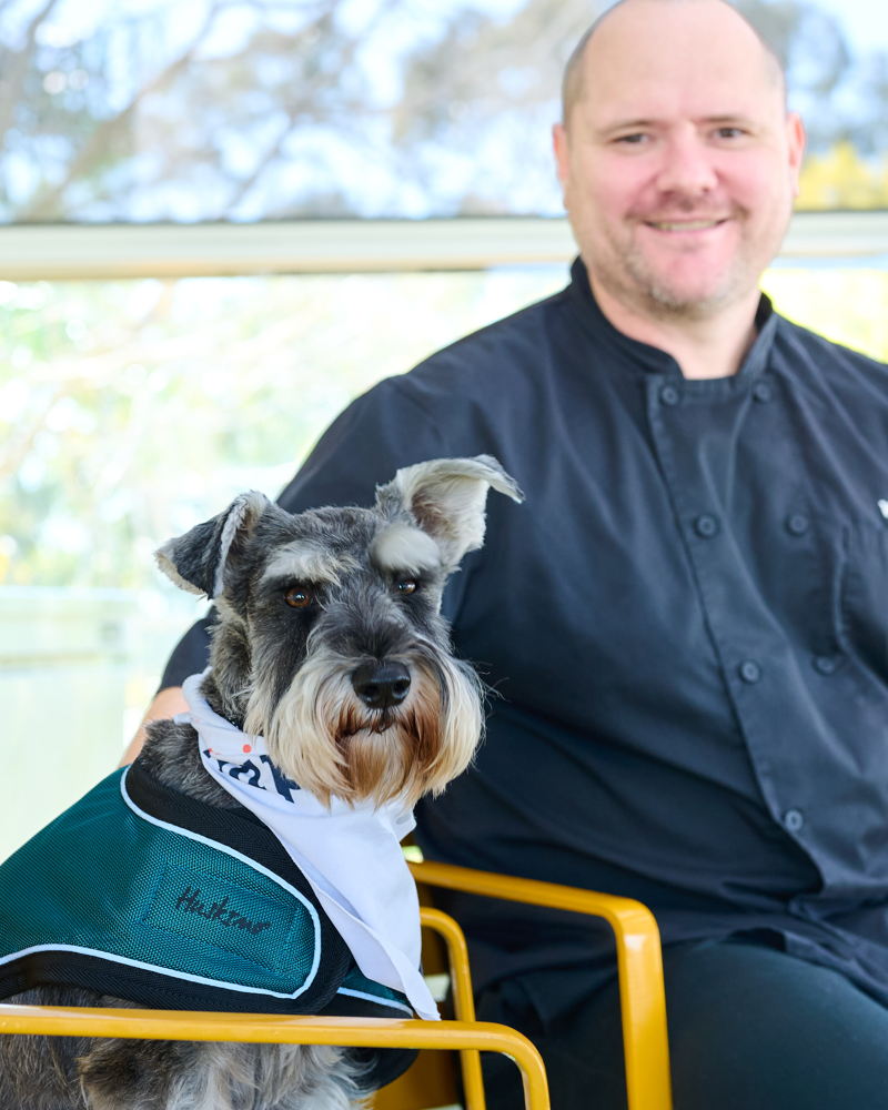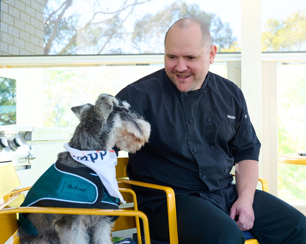 Leading this unique team is travelling relief chef Lloyd McLetchie and his miniature schnauzer Roy, Whiddon’s unofficial everywhere Chief Happiness Officer (CHO). At just under three years old, Roy has spent the past twelve months on the road with Lloyd, bringing joy and comfort to residents across Whiddon homes in rural New South Wales.
