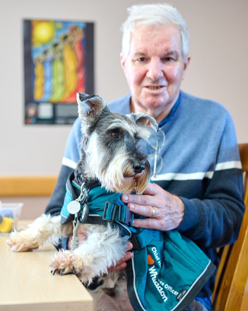 George, a Keeshond from Whiddon Easton Park, has been a valued volunteer for over three years, beginning his career at just eight weeks old when he attended his first Community Care Conference. Known for his affectionate but cheeky nature, playful tricks, and distinctive woolly coat, George consistently brings comfort and joy to residents.